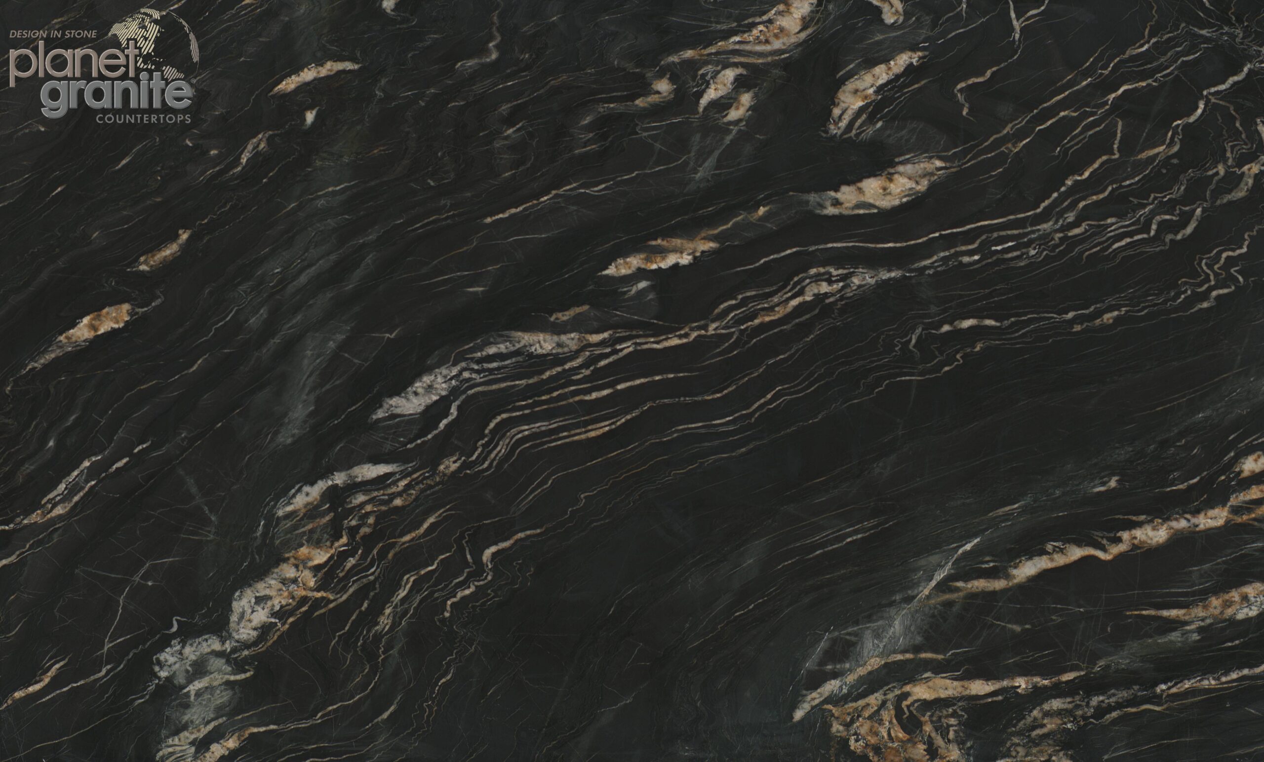 Belvedere Quartzite is a dramatic and luxurious natural stone featuring a deep black background with sweeping veins of white, gold, and grey. Its bold contrast and flowing movement evoke the look of stormy skies or ocean waves, making it an eye-catching choice. Belvedere Quartzite adds timeless sophistication to any design.