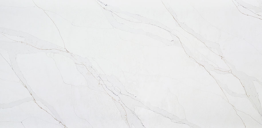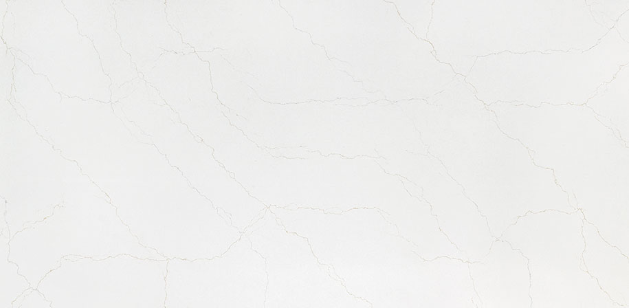 This quartz showcases mesmerizing gold and gray veining with a unique patented crackled effect that creates deep visual allure and striking movement. The pristine white background provides a clean, classic base that beautifully highlights the dramatic veining. A polished finish enhances the surface with a smooth, reflective sheen, adding elegance and depth. This quartz is ideal for creating stunning countertops, backsplashes, waterfall islands, and accent walls in both residential and commercial settings.