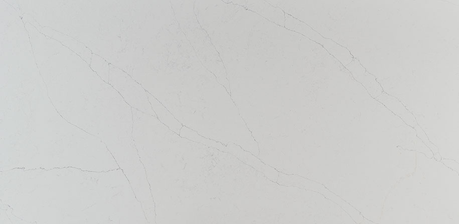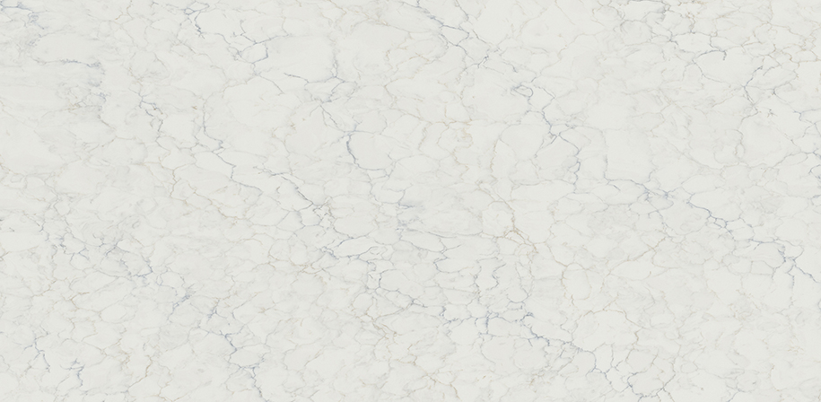 This inviting marble-look quartz features delicate gray veins accented with subtle gold highlights, creating an elegant and sophisticated appearance. The warm white backdrop provides a bright, welcoming foundation that complements a variety of design styles. A polished finish adds a smooth, reflective sheen, enhancing the surfaces beauty. This quartz is ideal for creating stunning countertops, backslashes, and wall accents in kitchens, bathrooms and entryways.