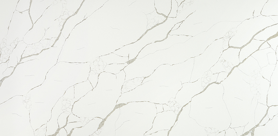 This marble-look quartz features dramatic movement with soft brown veining, creating a design that is both classic and modern. The milky white background provides a clean, bright canvas that beautifully highlights the realistic veining. A polished finish adds a smooth, reflective sheen, enhancing the surface’s elegance. This versatile quartz is ideal for creating show-stopping waterfall islands, countertops, backsplashes, and accent walls in both residential and commercial environments.