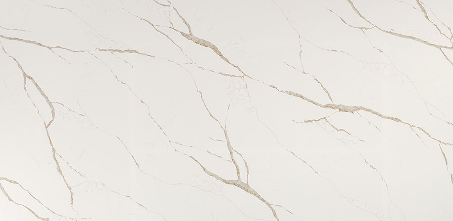 This quartz showcases dramatic gray veining throughout the slab, delivering an authentic marble appearance. The soft white backdrop provides a classic, clean foundation that complements a variety of design styles. A polished finish adds a smooth, reflective sheen, enhancing the surface’s elegance. Ideal for creating a signature look, this quartz is perfect for countertops, waterfall islands, backsplashes, or accent walls in kitchens and bathrooms.