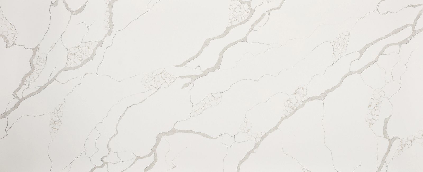 Calacatta Maywood is white quartz with subtle, pebble grey detailing throughout. Its faint pattern gives the material character, adding an organic element to its overall look.