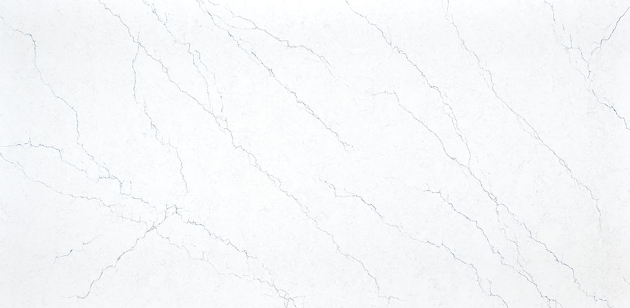 This marble-look quartz showcases dramatic veining with dusky blue and silver tones, accented by soft, cloudy gray patterns that move gracefully throughout the surface. The superior white background provides a clean and bright foundation that enhances the depth of the veining. Crafted using MSI’s exclusive LumaLuxe Ultra® formulation and made in the USA, this quartz offers remarkable realism and visual impact. A polished finish adds a smooth, reflective sheen that elevates its elegance. It is an ideal choice for countertops, waterfall islands, and accent walls in both residential and commercial settings.