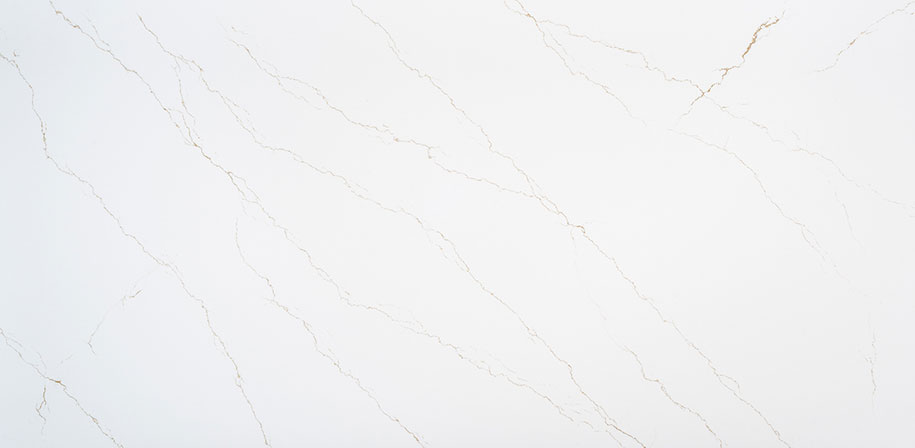 This dramatic quartz features a marble-inspired design with elegant golden brown veining that creates a striking statement. The crisp white background beautifully complements the veining, allowing the pattern to stand out. Enhanced with LumaLuxe® technology and made in the USA, the surface intensifies how light interacts with the quartz for eye-catching depth and dimension. A polished finish adds a smooth, reflective sheen that enhances its overall elegance. This quartz is perfect for countertops, islands, backsplashes, and shower surrounds in both residential and commercial spaces.