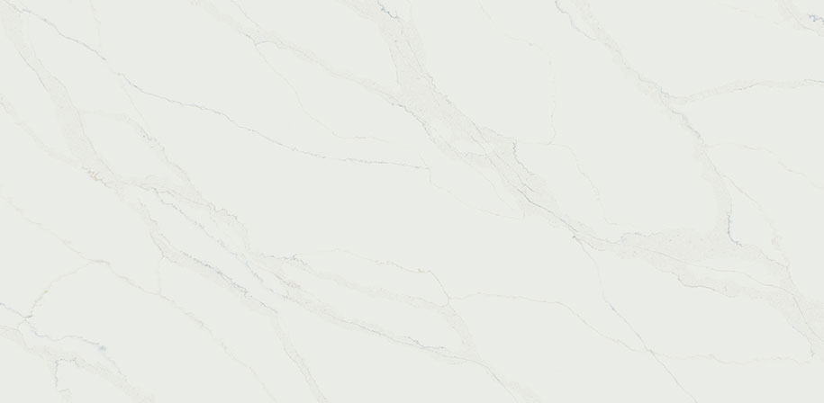 This quartz features dramatic veining, offering a marble-like aesthetic with thick gray veins interconnecting with thin veins across a crisp white background. The base is woven with neutral and cool tones, adding subtle depth and sophistication. A polished finish provides a smooth, reflective sheen that enhances the surface’s elegance. Ideal for creating eye-catching countertops, backsplashes, and kitchen islands in both residential and commercial properties.