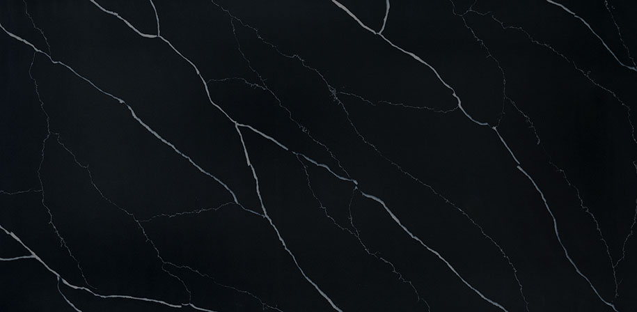 This versatile marble-look quartz features bold, majestic white veining for a dramatic, high-impact aesthetic. A deep black base evokes the intrigue of a moonless night, creating striking contrast and depth. A polished finish enhances the surface with a smooth, reflective sheen for a touch of glam. Ideal for unforgettable countertops, accent walls, and islands in both residential and commercial settings.