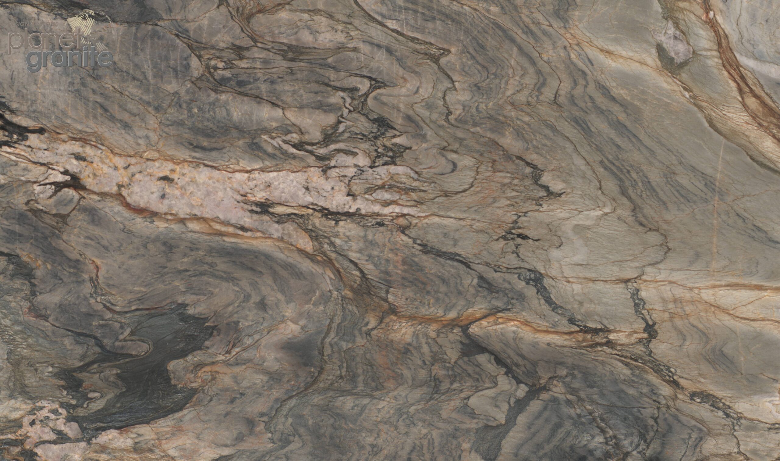 Mont Blanc quartzite features a soft white or light gray background with delicate, flowing veining in shades of gray, taupe, and charcoal. Its elegant, marble-like pattern creates a natural, sophisticated look, often with subtle movement and variation that adds depth and texture.