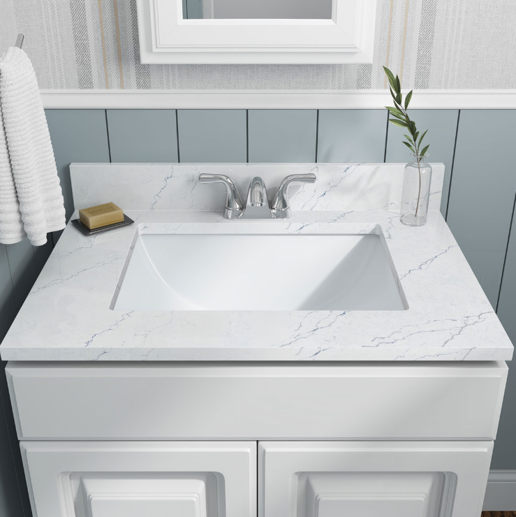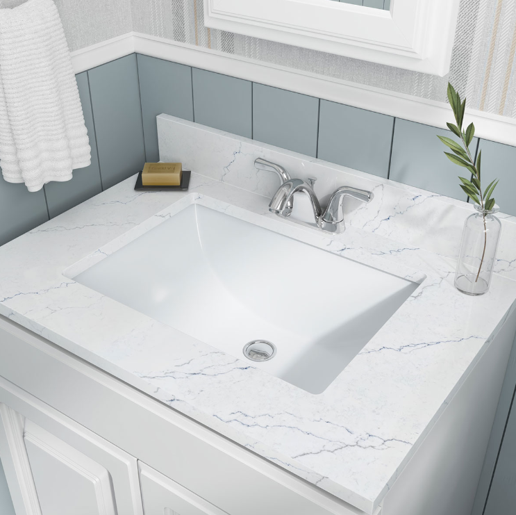 This stunning white rectangular undermount vanity sink is crafted of durable porcelain to meet the demands of everyday use. Its neutral white shade and contemporary shape work well with a wide variety of master baths, guest baths, and powder rooms. Easy to clean, this porcelain sink features a beautifully designed 7 5/8” basin and overflow hole, making it as practical as it is elegant. The perfect complement to your bathroom vanity top, you can count on this sink to provide years of enduring beauty.
