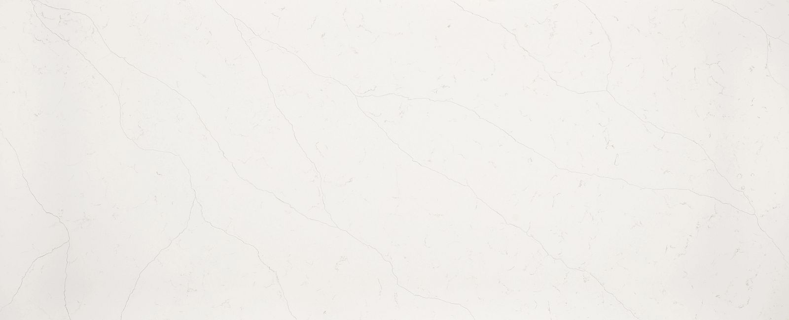 New Venatino Beige is bright white quartz. It’s grey “veining” sweeps across its white backdrop, giving the material the appearance of marble.