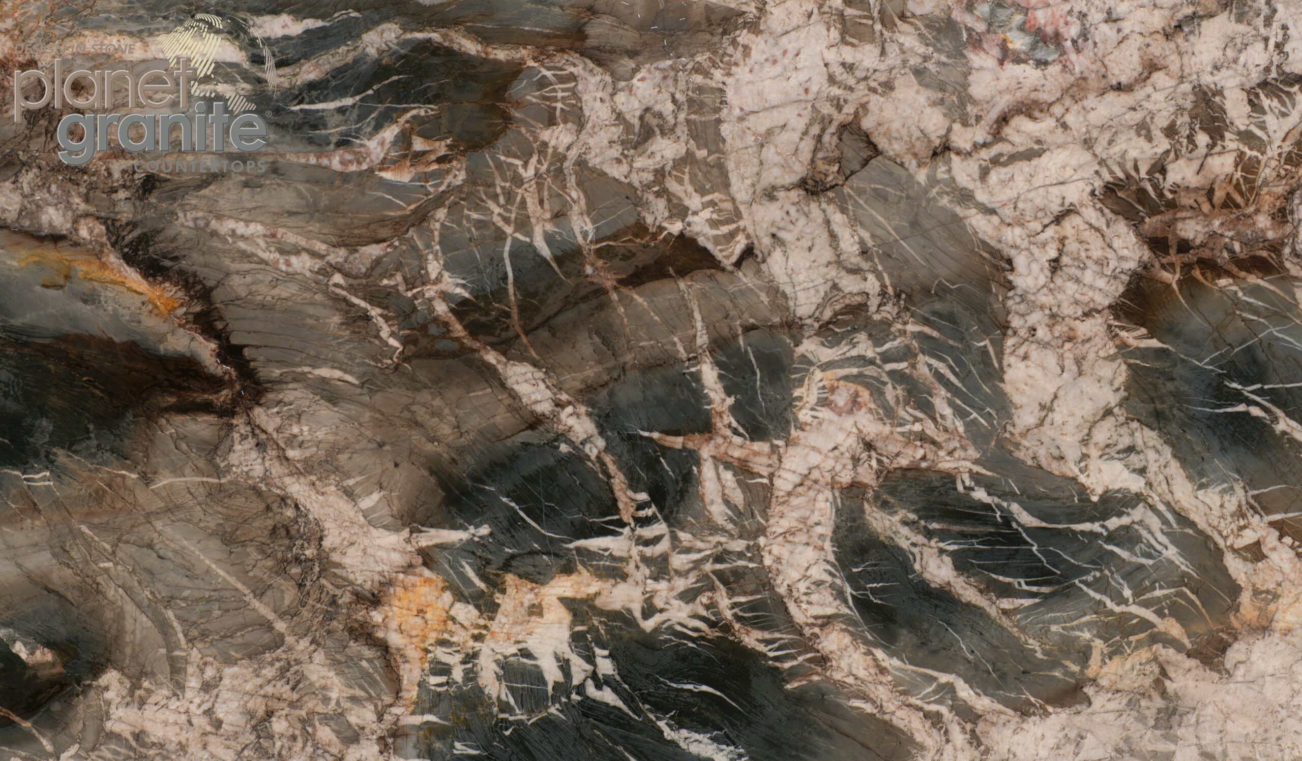 Ocean Blue Quartzite features rich shades of deep blue blended with soft gray and white veining, creating a striking, ocean-inspired look. Its vivid color contrasts and flowing patterns are highly visible, giving the stone a dynamic and luxurious appearance. The natural movement within the stone makes each slab uniquely captivating.