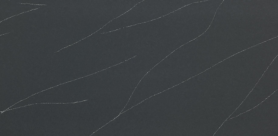 This quartz showcases long, faint white veining for a refined soapstone-inspired look. A dark gray background adds a contemporary, dramatic feel. A polished finish enhances the surface with a smooth, reflective sheen. Ideal for countertops and wall accents in both residential and commercial settings.